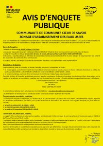 AVIS D’ENQUÊTE PUBLIQUE – Communauté de Communes Coeur de Savoie – Zonage d’assainissement des eaux usées